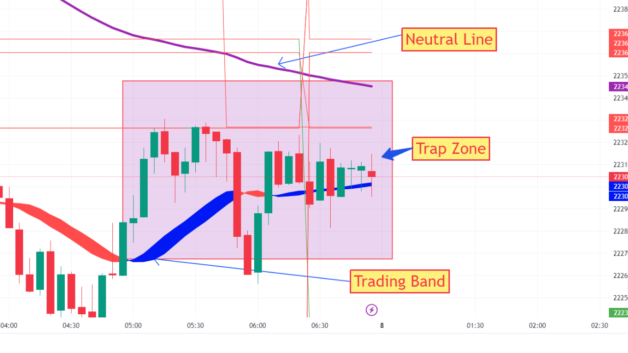 Remove time decay by identifying trap zone using trading band and neutral line